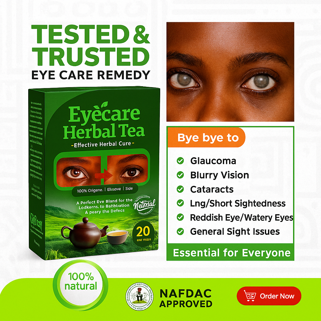 This package contains 1 pack of (Eye is the king of the body), a well researched and NAFDAC Certified Herbal remedy for all eyes problem. It contains 15 sachets and can be used with